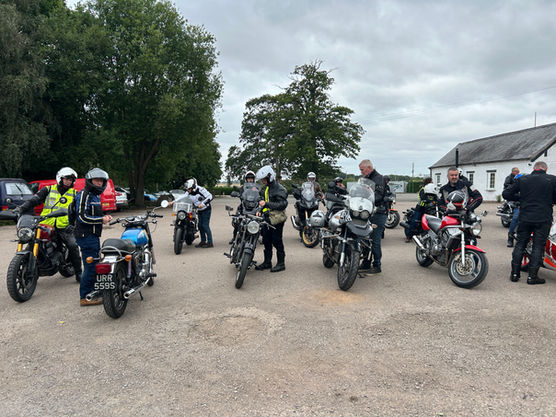 31 riders and their machines assembled on this glorious warm sunny morning at the "Yew Tree Farm" at Wooton Wawen. Our briefing included the Identity of our Tail End Charlie and our Back-Up rider, before we headed off on a 30mile ride out to our first destination point.