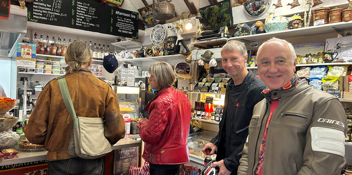 The staff at the Barn in Berryfield were very excited as the bikes arrived and the Butchers department left their shop counter to come outside and chat with us and view all the machines. All the staff at the Barn were really very happy and friendly and I thanked them all personally for their warm welcome, so I can imagine we will include this venue in a future ride out, either as a starting point or destination.
