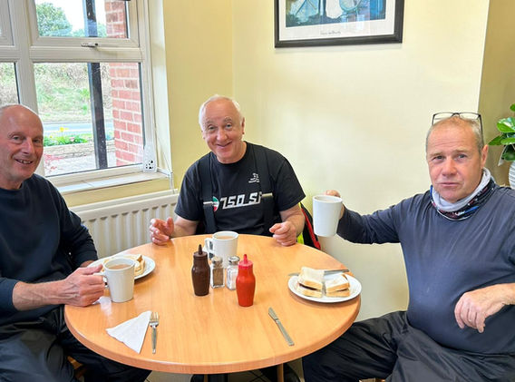 In all 18 riders assembled, although 1 had just ridden there to test out his bike, and was not coming on the run. So 17 of us set off wondering what the morning would provide for us. After some excellent meandering along some leafy lanes, our leader decided that we clearly needed some ‘wider’ road experience for the 2nd half of the run…and managed to get us all safely to our destination before the end of the breakfast service - well done Bob!